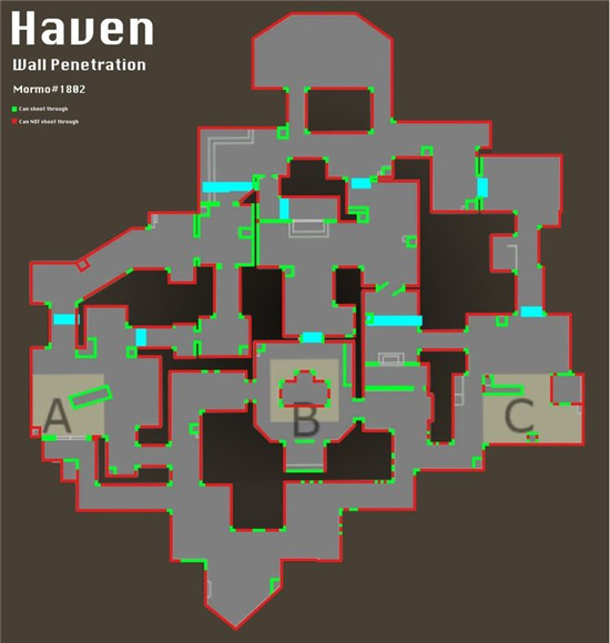 A的天堂heaven到A点台灯(lamps、小道takeout、U厅U-hall):当你瞄准的是那里的角落会很好穿。 水烟通道Hookah connector:我都不知道要怎么告诉你,我有多少次用轻机枪从进攻方的中路扫射进水烟通道拿到首杀了。 B点->A点的传送门Teleporter:不确定这有多少帮助,不过如果你发现你自己被卡在了这个B点->A点的传送门房间里面,你可以从角落那里射向一些明显的龟点。