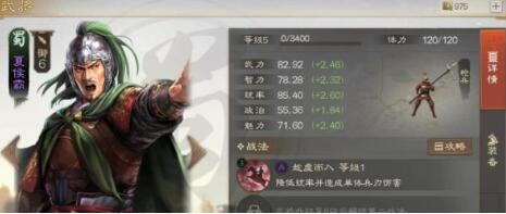 3、夏侯霸:五维属性成长均衡,战法可以降低敌人统帅并造成兵刃伤害。前期还可以放在政厅或者兵营,或者提升占矿和刷贼寇的经验;