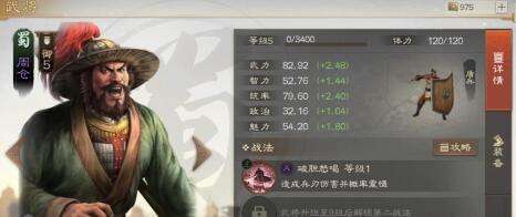 4、周仓:武力值和统帅成长较高,被动有几率震慑敌人,可以搭配一些被动技能提升坦度。