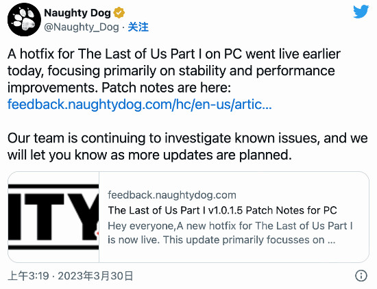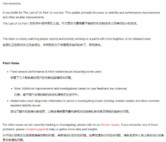 顽皮狗还补充说,他们正在根据用户反馈积极进行更多改进,并添加了额外的崩溃诊断,以帮助收集有关着色器构建相关崩溃的更多信息。