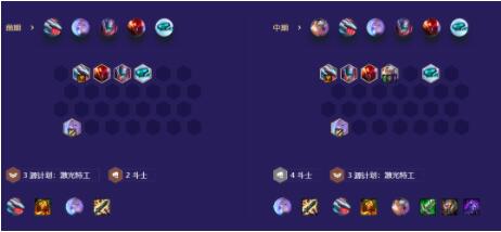 源的前排身板不如4福牛以及决斗,所以中期建议4斗过渡,也非常依赖连胜装,成型也偏后期,怕节奏快的局提前搜质量。