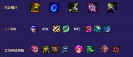 这套是开4灵能的,所以安妮吃肉装有收益,崔斯特是4阶段初期主c,剩下肉装给佛耶戈,输出装给妮蔻。