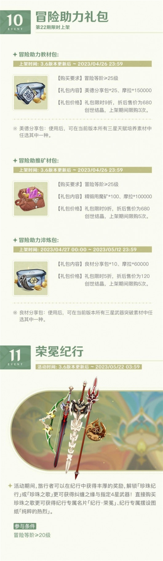 原神3.6版本一期活动一览