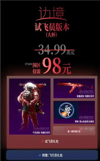 包含飞行员版本的所有内容,以及干员皮肤电镀红系列、武器皮肤电镀红系列、定制级臂章南山轨道安全集团和第一赛季通行证。