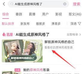 1、打开哔哩哔哩,搜索输入“AI能生成原神风格了”。