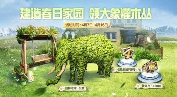 前往家园建造家园,邀请好友点评攒人气,人气达到指定数值即可领取装饰币、4周年福利碎片和园林灌木-公象等奖励。