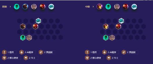 英雄强化5费优先考虑亮闪闪,234费的强化可以拿秘术的团队强化,也可以拿怪兽的团队强化,后期单挂即可,非英雄强化只选择经济类,辅助自己上9级。