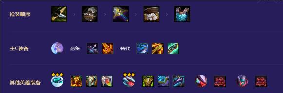 装备优先考虑艾希的轻语随后补充布里茨的肉装偷偷可以给亚索以及沃里克携带记得要做离子火花给雷克顿破除魔抗打出源计划的伤害!