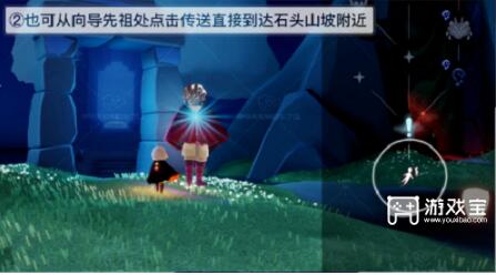 2、也可以从向导先祖处点击传送直达到达石头山坡附近。