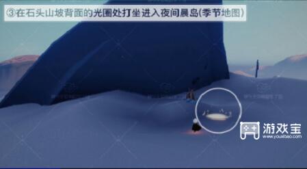 3、在石头山坡背面的光圈出打坐进入夜间晨岛(季节地图)。