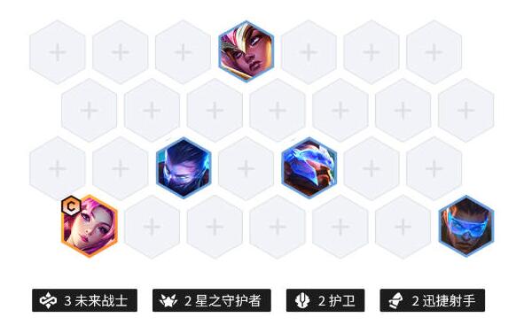 2、阵容羁绊:1怪兽+3秘术卫士+3战斗机甲+2星之守护者+2护卫+2迅捷射手+1精英战士。