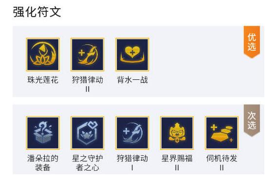 (2)次选:潘多拉的装备、星之守护者之心、狩猎律动I、星界赐福II、伺机待动II