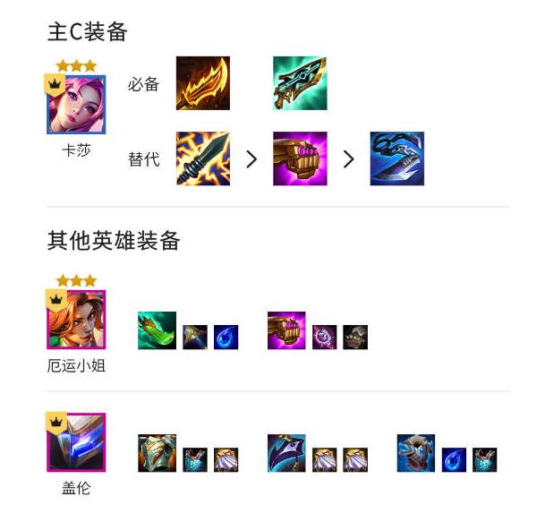 金铲铲之战S8.5秘术机甲卡莎阵容怎么配队?金铲铲之战推出到了S8.5赛季,在此之前已经经过了三四次更新了,对羁绊以及英雄数值都有进行调整,像是过于强势的阵容都进行了削弱,但其实对玩家的阵容搭配选择上是不会造成太多影响的。不知道大家喜不喜欢玩秘术机甲卡莎阵容,虽然卡莎被削弱了,但是在中后期满装备的情况下还是很强势的,借助机甲羁绊能够实现超高坦度,龙王以及女枪可以在后排提供爆发伤害,只需要确保有足够多的肉装给到前排,想要吃鸡或是吃分还是很容易就能实现的。