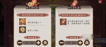 2、玩家可以通过“商店”-“招福达摩”开启活动页面,使用勾玉或魂玉购买“福气赏礼券”参与抽奖;