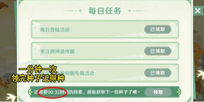 2、种子需通过采集获取,每1分钟可在「每日任务」中手动采集一份,完成「每日任务」中的指定任务则可以获得更多种子。