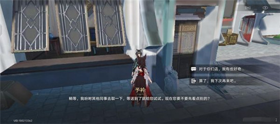 2、如果玩家第一次和予衿对话的话,首次对话随便选即可。