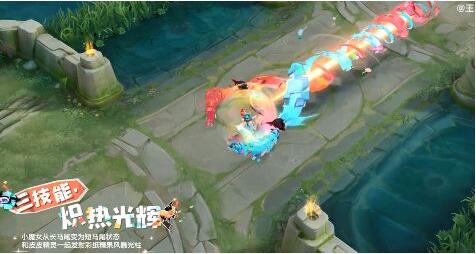 皮肤设计以充满节日庆典氛围的皮皮精灵为主题,安琪拉身着马戏团帐篷样式的撞色裙子,皮皮精灵咬着糖果头绳,原本爱心状的丸子头,变为缤纷多彩的大辫子肆意飞扬,可爱小魔女闪亮登场~特效设计充满庆典般的欢乐感,还有萌萌皮皮精灵一直陪伴着安琪拉共同作战,小精灵还拥有翻跟头、嬉戏的独特动作和彩纸特效哦~