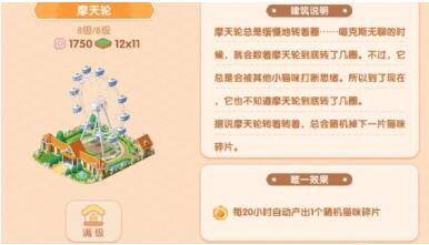 据说摩天轮会随机掉下一片猫咪碎片,每20小时自动产出1个随机猫咪碎片。