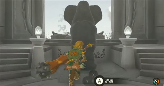 2、前往时之神殿后在教学内推门的前面就有这个女神像可以对话使用。