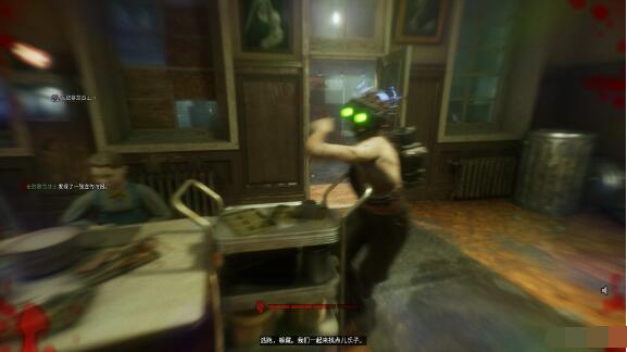 夜间猎人很有特点,它戴着夜视仪所以眼睛的位置很亮,讲话的时候也是伴随着电流声的,所以很好辨认出来。它在黑暗的地方视力很好,但是在有灯光的地方就丧失视觉 光靠声音来判断玩家的位置。当玩家脱离仇恨之后它会回到黑暗的地方。