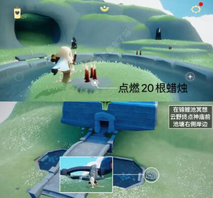 冥想点在云野神殿前石桥下方的锦鲤池旁