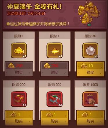 端午节主要活动就是悬赏任务,有招募悬赏、宝箱悬赏、捕获悬赏、盐罐悬赏、金砖悬赏,消耗或使用获得积分,积分达标可获得普通粽子和鼓槌(鼓槌用于俱乐部赛)