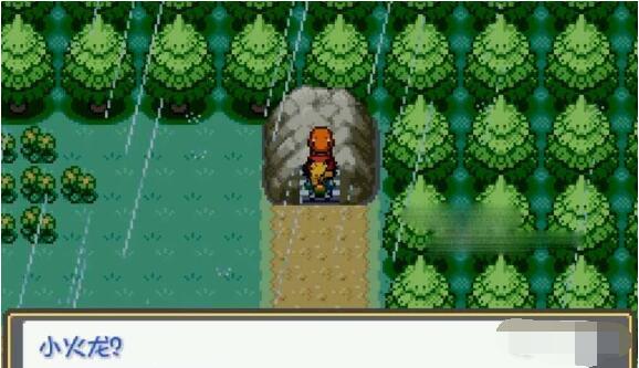 3、从宝可梦中心出去外面会下雨,再去找小火龙就可以选择是否要带走它了(如果没有下雨可以重新进入中心再出来)
