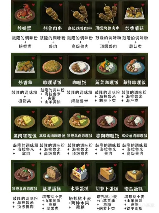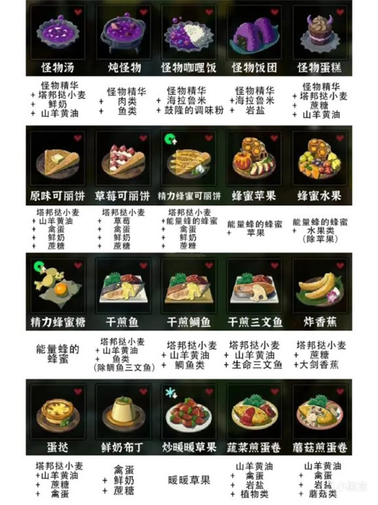 塞尔达传说荒野之息食谱大全分享