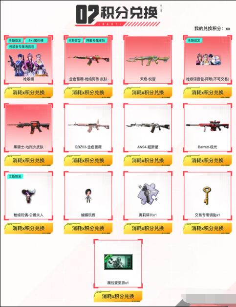 奖励有:QBZ03-金色蔷薇-枪娘阿敏皮肤、枪娘樱(3+1属性)、枪娘语音包-阿敏(不可交易)、枪娘玩偶-公爵夫人等等