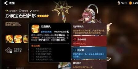 沙漠宝石巴萨尔具有很好的控制能力,技能沙漠之风除了为我方全体恢复生命值之外,还有几率对敌方造成眩晕。还可以召唤出沙尘暴风,对敌方造成防护罩转换以及命中降低等效果。技能芭丝特的咆哮,解除我方所有人员的弱化效果,并且在两回合之内免获得免疫,以及速攻值提升等。