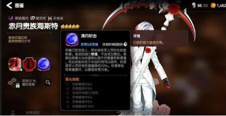 最后一个赤月贵族海斯特,在作用方面却不仅仅是辅助,还是有着很强的伤害能力。无论是染红的镰刀或者是满月斩击都是如此。此外还拥有技能怨恨,当敌军中有人复活时,我方所有目标将会获得护盾和免疫效果,将满月斩击冷却时间重置。满月斩击不仅仅是攻击技能,还能使我方人员生命值获得回复,并且造成防御力穿透效果,是一个在辅助和伤害方面都很全面的角色。