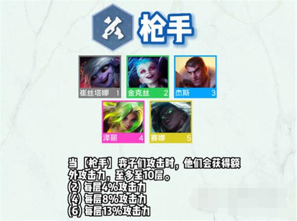 2:然后枪手羁绊的棋子,小炮,金克丝,杰斯,泽丽,赛娜;