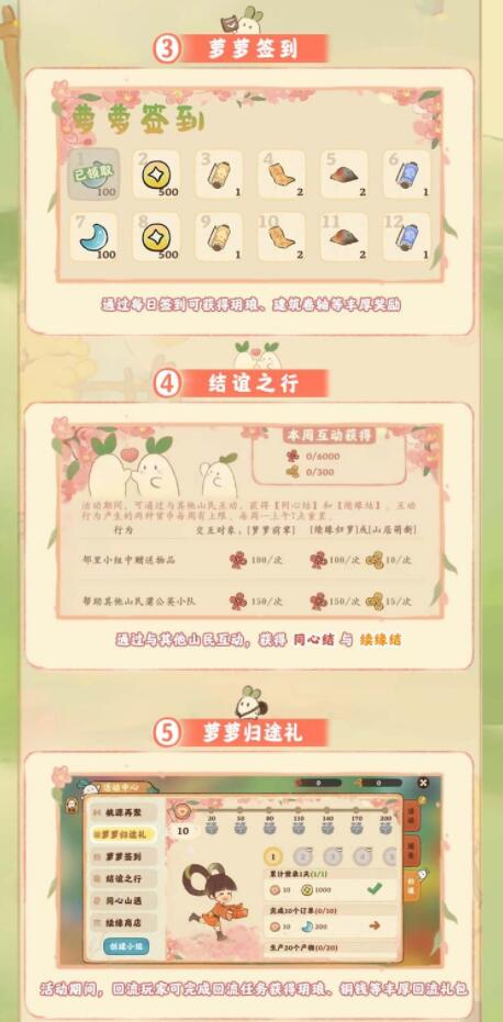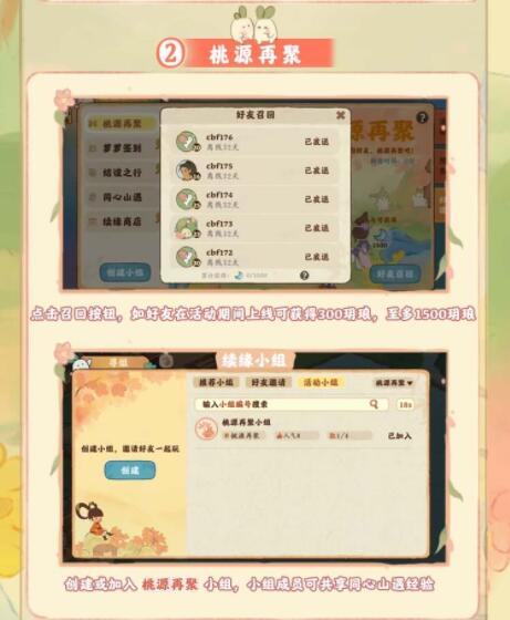 多重活动限时开启,山民们可以召回桃源旧友或邀请新朋友。