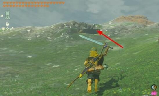 在此处可以看到山坡上有一个山洞,进入山洞内部。