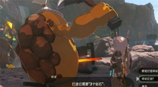 与正在打铁的伯洛杭对话接取【迷你挑战-鼓隆族之魂“碎岩巨剑”】,然后准备【劈石剑×1】、【钻石×3】、【打火石×5】,就可以直接造出碎岩巨剑(武器用坏了,也可以再进行锻造)。
