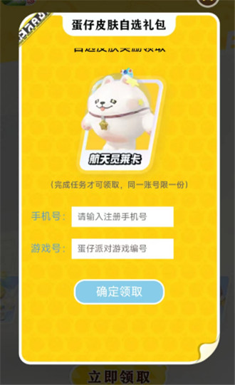 3、在兑换框中填写好手机号和相对应的游戏号后就可以领取到蛋仔皮肤自选礼包了。