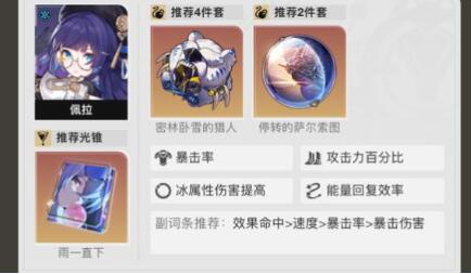 满命佩拉输出不算差 佩拉行迹拉满命中很高 技能命中基础高所以选择暴击衣副条堆命中 光锥选雨一直下提高命中的同时加暴击和易伤 彦卿也能吃到易伤 彦卿对群怪乏力 所以选择佩拉副c对群怪 输出手段战技A大循环 战技点自给自足;