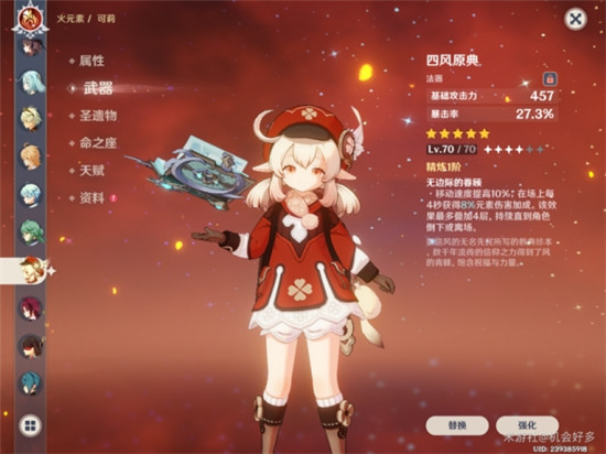 在普通攻击8级的情况下重击就有252的倍率,比她其他技能倍率都高!而且可莉的固有天赋砰砰礼物!也有百分之50的终极提升还能让可莉的重击不消耗体力