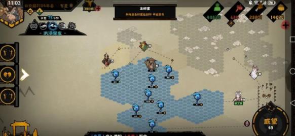 探索成功后,打下【阳翟】和【阪泉】两块空地增加水势上限。同时探索【下王岗】,触发野兽部落雍和。