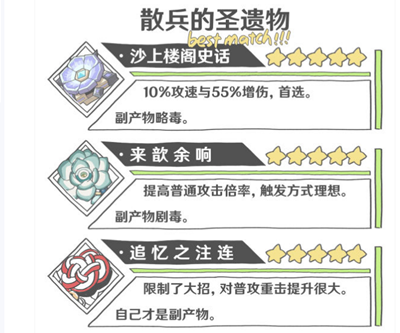 4.圣遗物选择:沙上楼阁史话四件套,增伤提升攻速,追忆四件套,限制大招但对普攻提升很大。