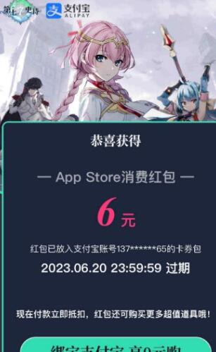3、这个是跟支付宝一起的活动,领红包随机减,礼包0元起,最高是有六元的红包,只需要绑定支付宝就可以0元购了。