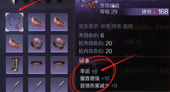 主线剧情会给一个红色独珍项链,独珍效果是幸运+10,千万别分解。