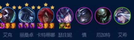 除寒冰厄加特,其他所有卡站第一排,艾克卡特站冰女旁边吃圣杯,对位方面,碰到对面后排主c阵容,艾克和对方主c站同侧,触发潜行者能够飞到后排切c位,碰到挖掘机,克烈,狼人等前排主c阵容,可以直接正面硬刚,因为艾克单挑基本不虚,就算刚不过,触发潜行者艾克还能够飞走。
