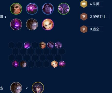 2阶段以3虚空为中心,补波比开2壁垒,后排随便选个长手的带装备给维克兹打工,没有必要特意去凑2法师,你单挂个1星金克丝都很强。