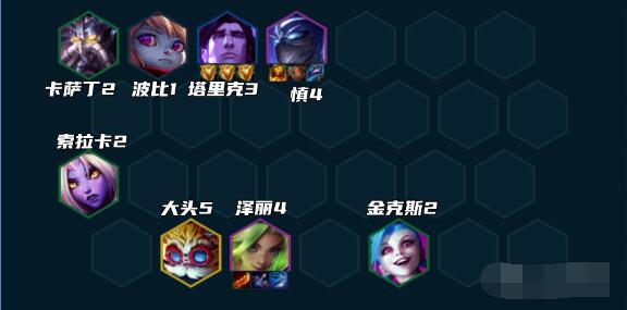 如果有堡垒转的话,可以考虑下掉索拉卡开6堡垒。或者选择上9,开8堡垒。没有堡垒转一般成型阵容就如下图,8级D3星泽丽、3星慎就行。
