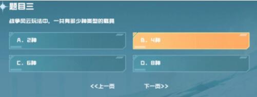 cf手游战垒驾照考试第三题答案是什么?CF是一款我们童年时期经常会玩的枪战竞技游戏,现如今它又推出了手游版本,在原先端游的基础上又增加了大量的角色武器,游戏模式也多了起来,大大提高了游戏的可玩性。玩家需要通过不断的战斗,用最强的火力来击败对手才能获得足够多的奖励来换取强力的枪支。战争风云是其中一个很热门的活动,他会给出几个常见的问题给玩家回答,想要答出就需要了解战争风云中的几种道具。还有不清楚的武器道具的小伙伴可以多看看下面小编的具体介绍,相信一定会帮助到你们的。