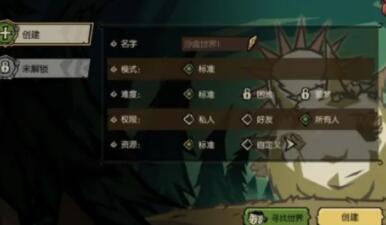第一次创建沙盒世界时还未解锁自定义世界规则的权限,直接点击创建即可。家园等级越高,可自定义的规则就越多,这时就可以根据自己的需要来调整选项。介绍下各个选项的作用:
