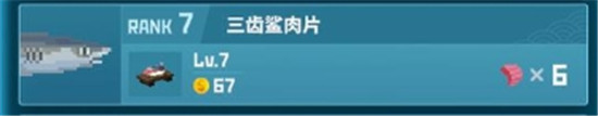 3、更加推荐三齿鲨,RANK7,等级为LV7,产出6块肉,售价67。