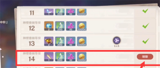 当神樱树达到14级时可以领取奖励。
