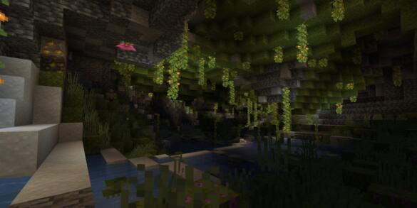 废弃传送门、废弃矿井、紫晶洞及要塞可以在繁茂洞穴生物群系生成。